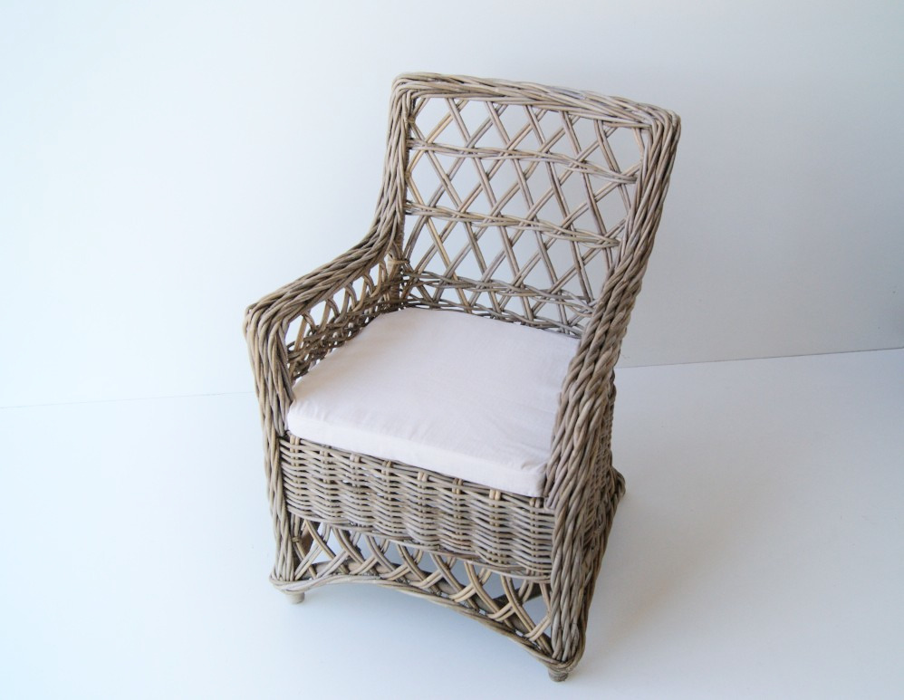 Stol grå rattan m/hynde hvid |