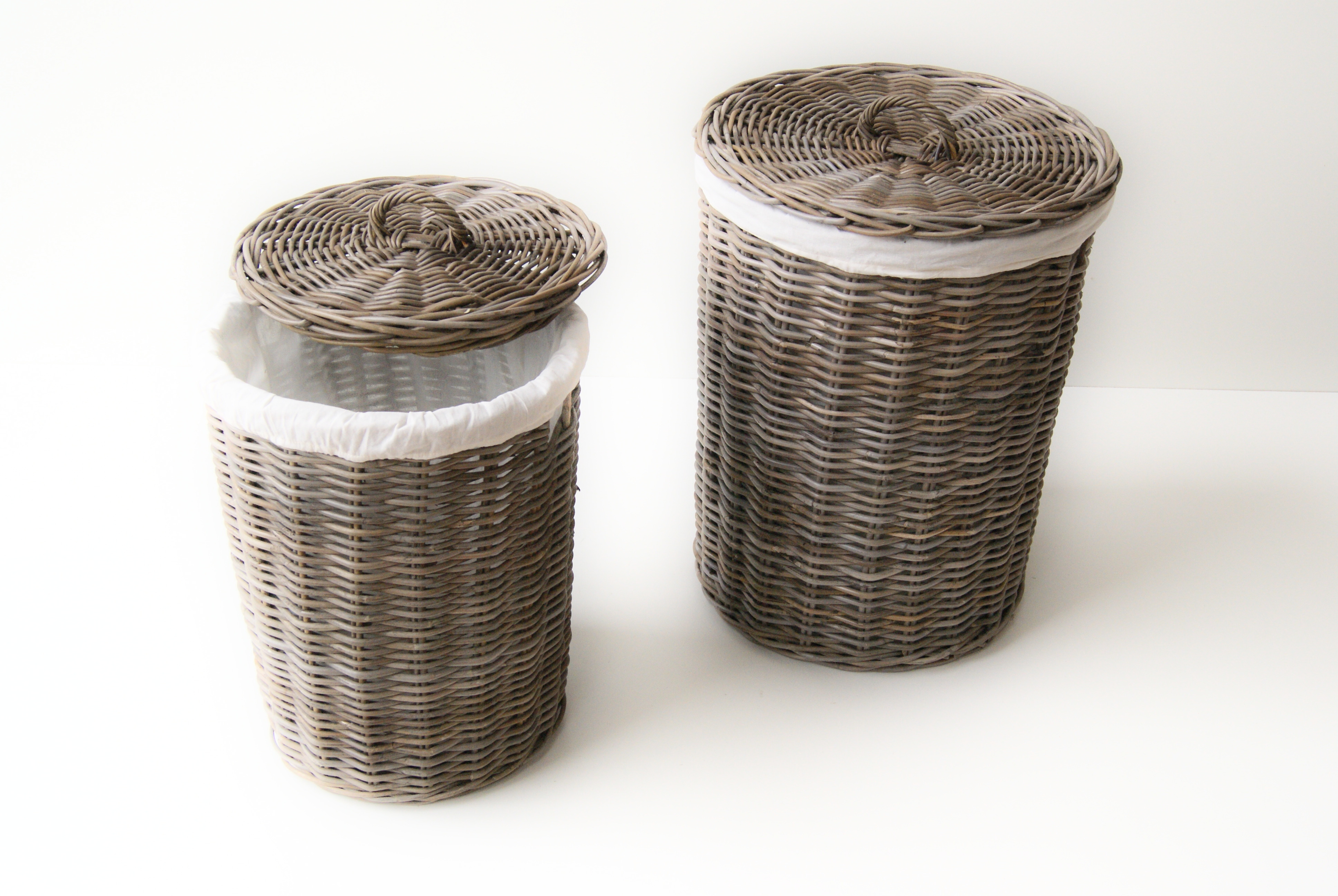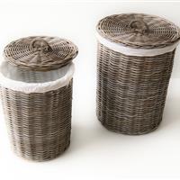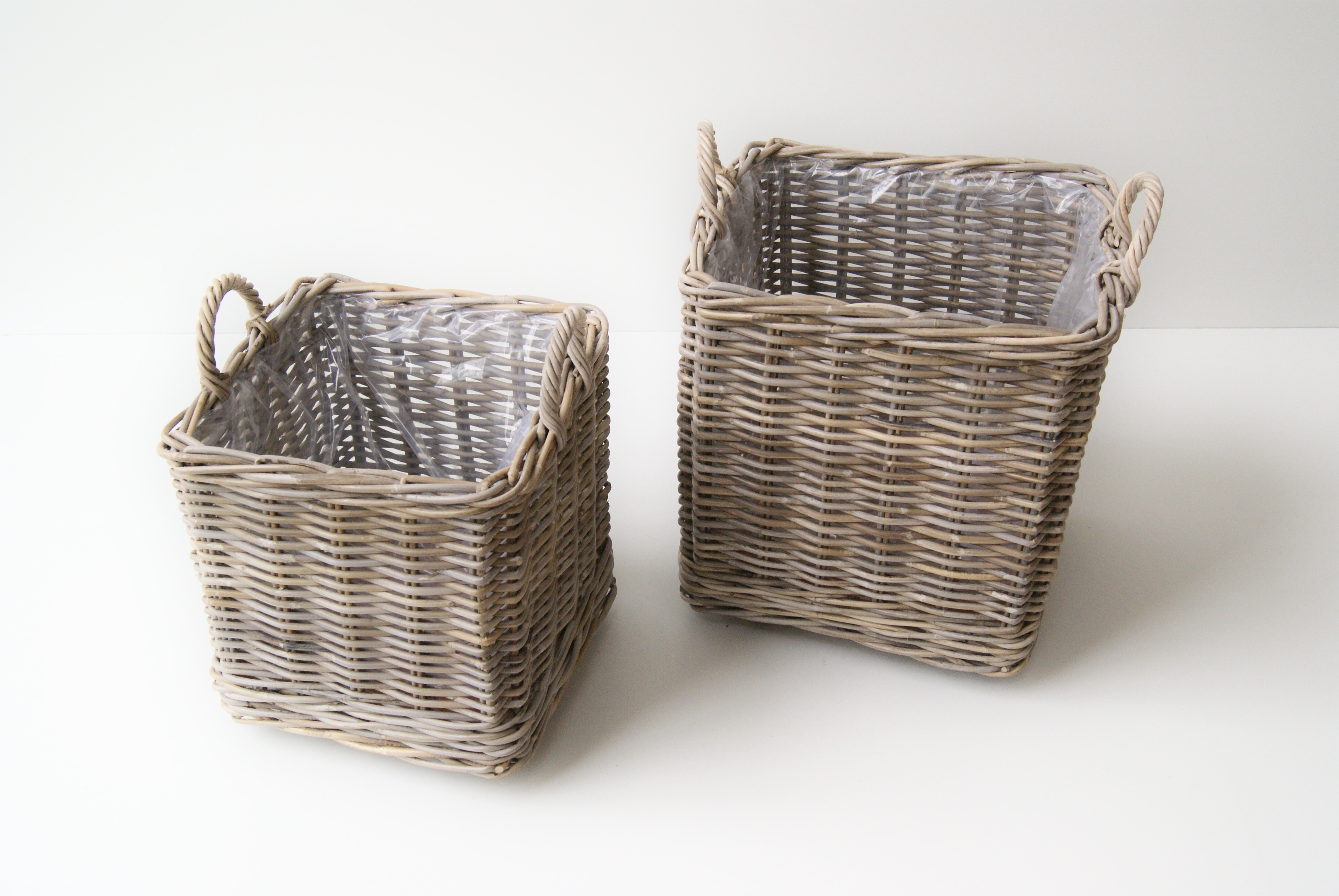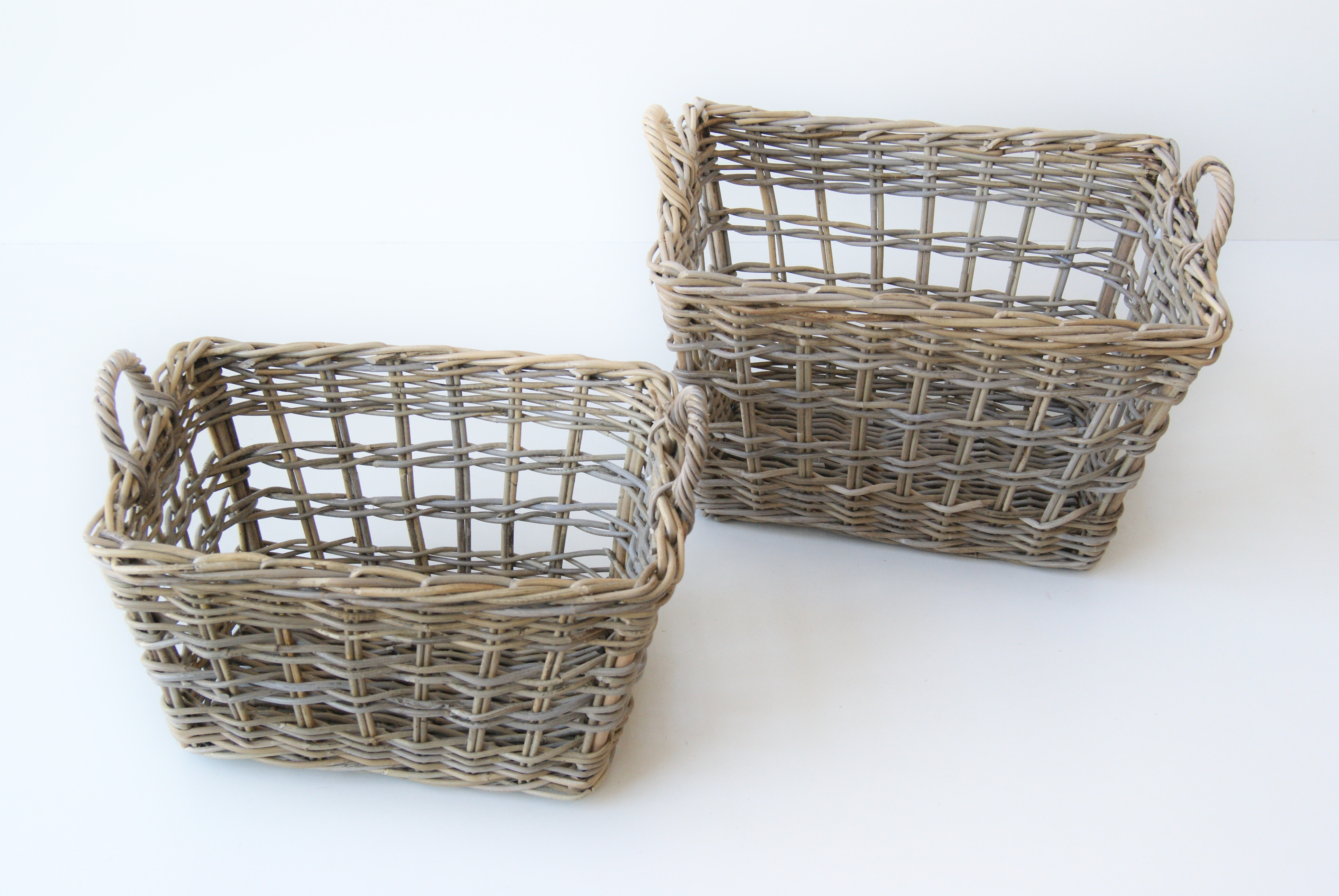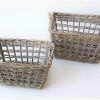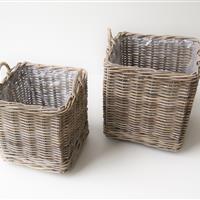 Tøjkurv s/2 rekt grå rattan |